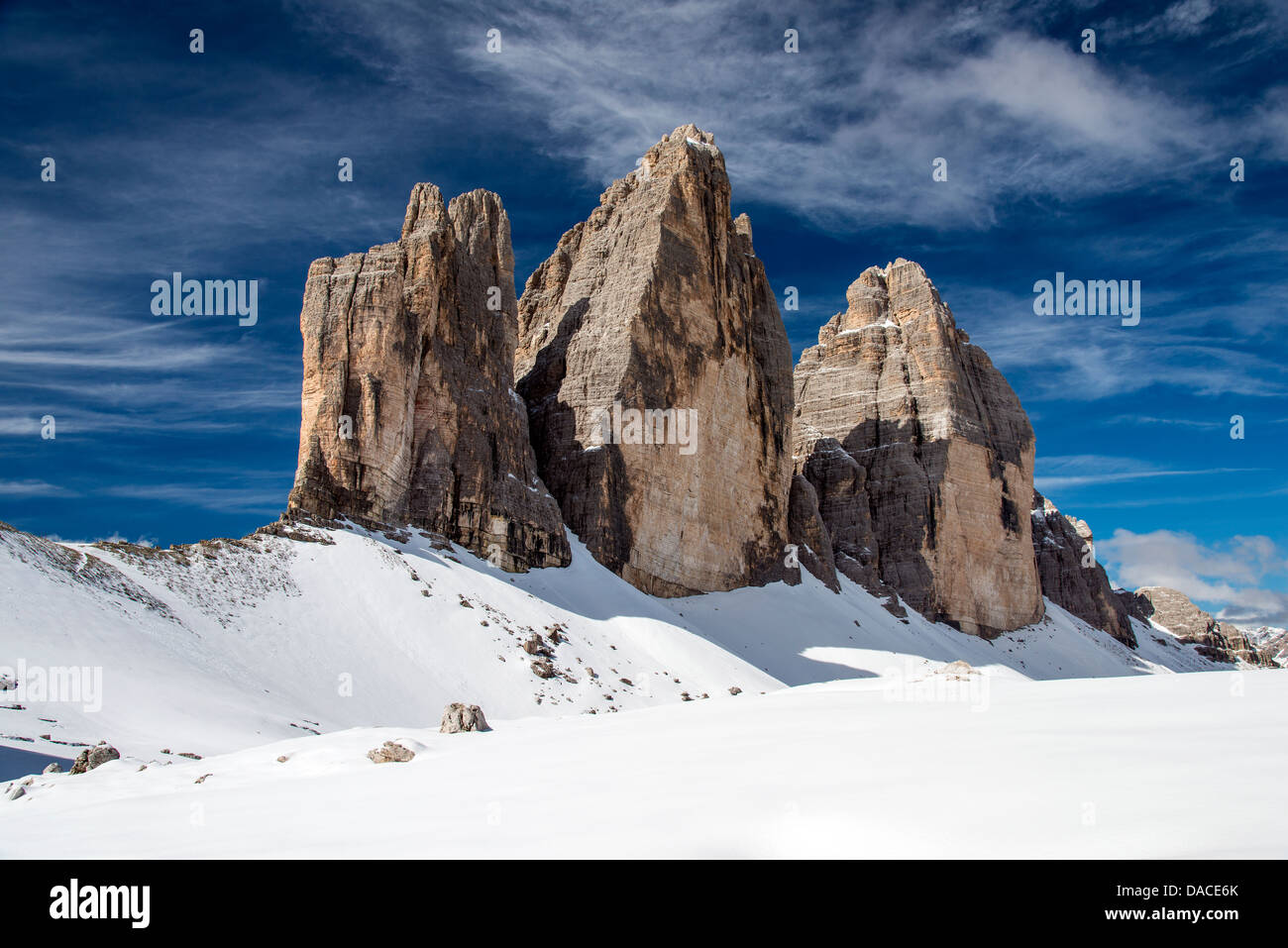 Winter Blick Auf Tre Cime Di Lavaredo Oder Drei Zinnen Dolomiten Veneto Italien Stockfotografie Alamy