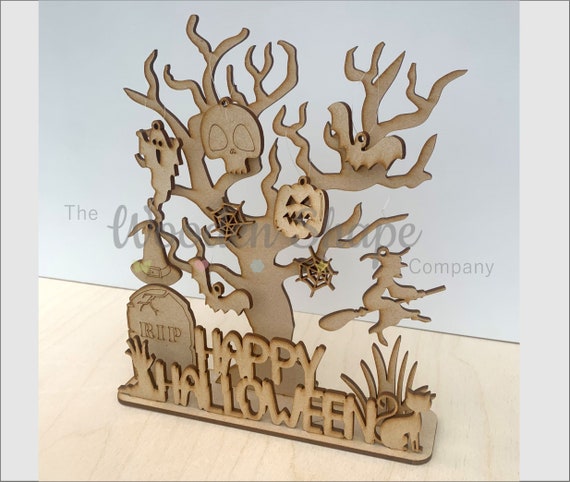 Blank Craft Kit Laser Cut Wooden Mdf Haunted Halloween Tree Etsy